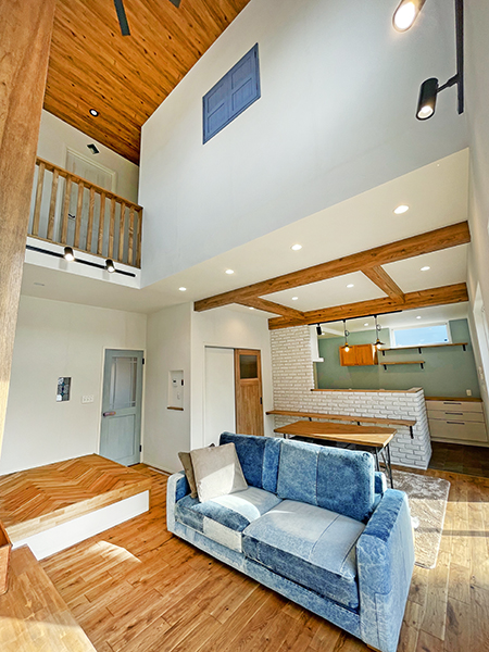 吹抜けのあるリビングは、明るくとっても開放的!