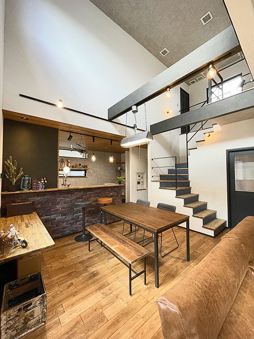 ダイニングや、ベンチもアイアンなので、階段との相性もばっちり!