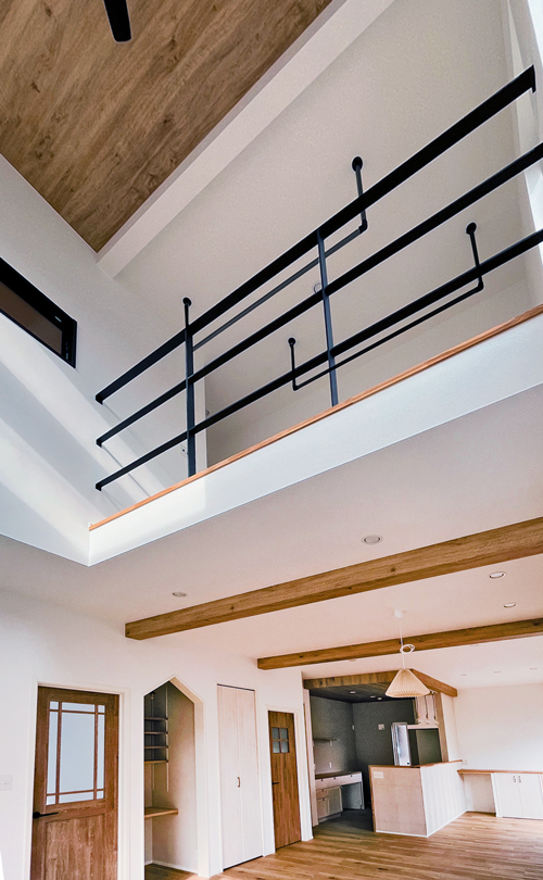 キッチンの天井や梁、ドアなど、木目調で統一されたインテリアの魅力を引きだしてくれます♪