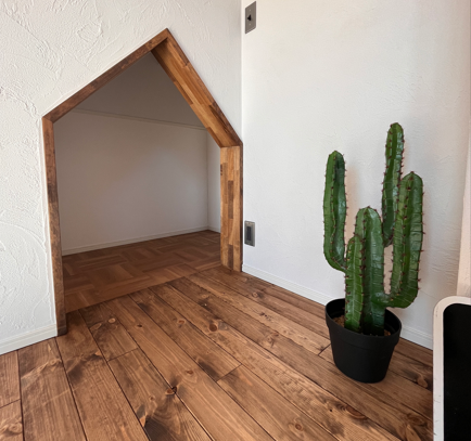 リビングには、階段下のデッドスペースを利用して愛犬のためのスペースになっています(*^▽^*)