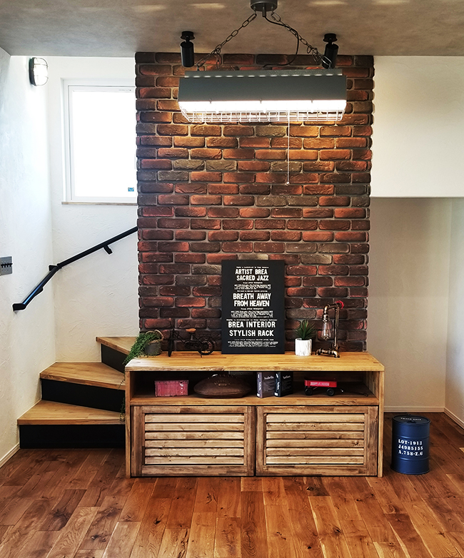 ブリックタイルの壁との相性が抜群です。