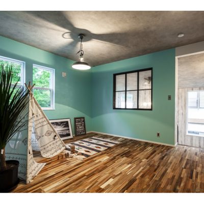 - ③オシャレな青色の内装にアイアンの窓枠がポイントな2階のサブリビング