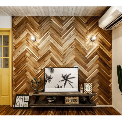 - ②無垢材をヘリンボーン張りにしたアクセントウォール