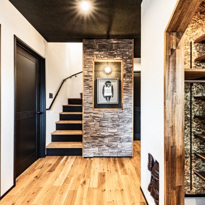 - ②白と黒のコントラストがカッコいいバーのようなリビング&カウンター
