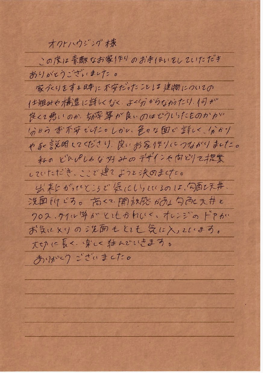 この度は素敵なお家作りのお手伝いをしていただき ありがとうございました。